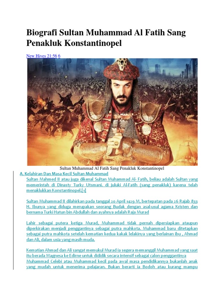 Biografi Sultan Muhammad Al Fatih Biographies Of Famous Figures In World