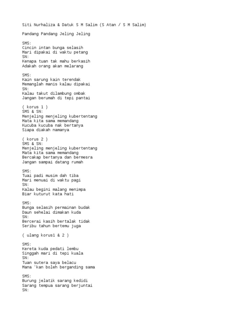 Pandang Pandang Jeling Jeling Siti Nurhaliza Sm Salim Lirik Lagu