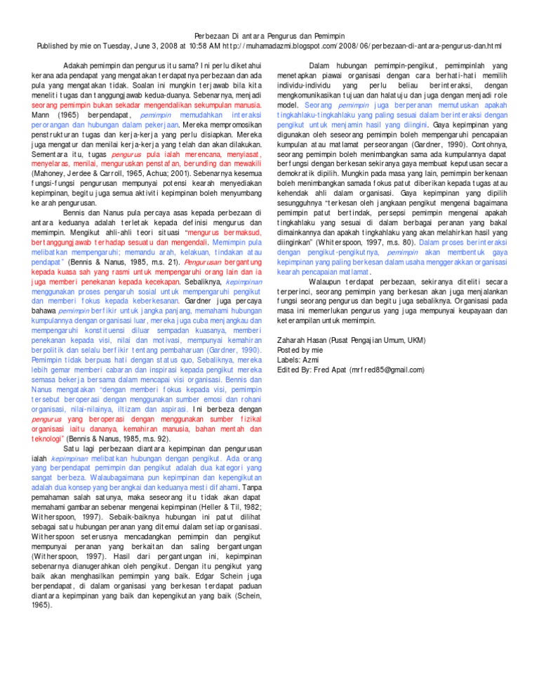 Perbezaan Antara Pemimpin Dan Pengurus Docx Document