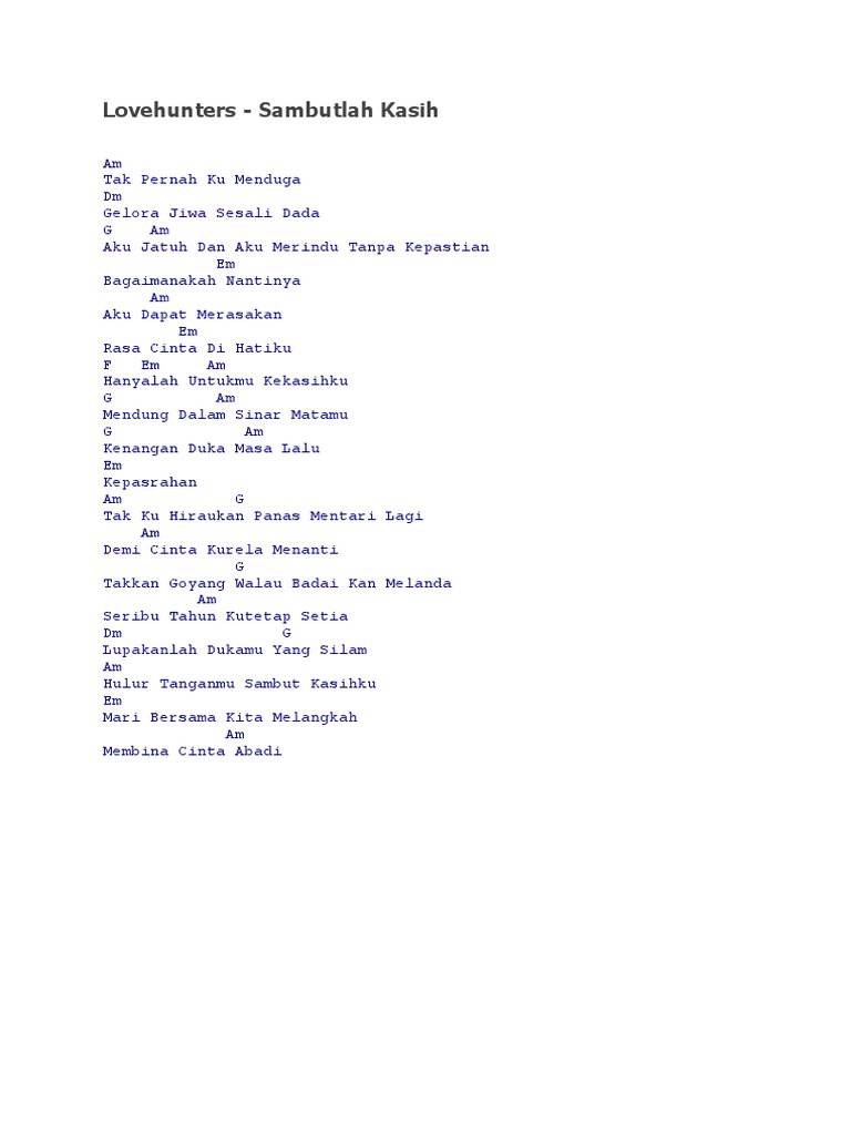 Lovehunters Sambutlah Kasih Lyrics Musixmatch